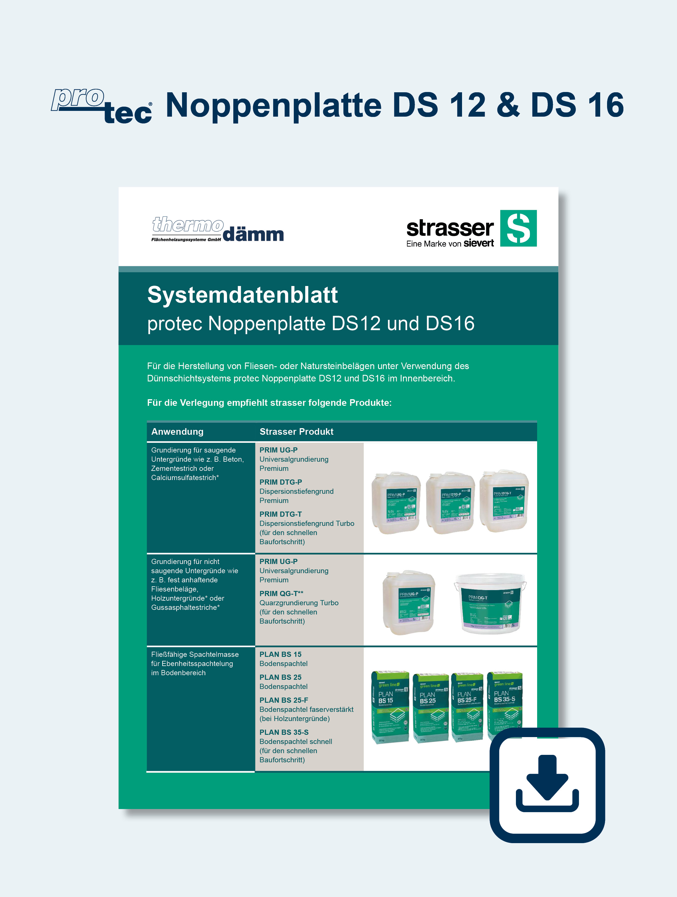 In Zusammenarbeit mit Sievert erhalten Sie Verlegeempfehlungen zu unseren protec® Renovierungs- und Sanierungssystemen in Kombination mit Produkten der Marke strasser.