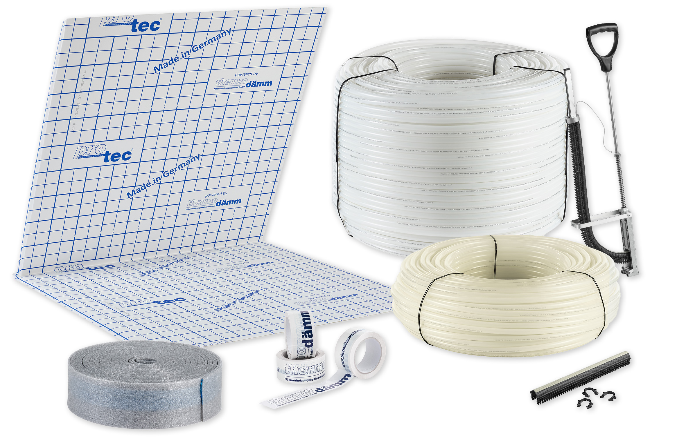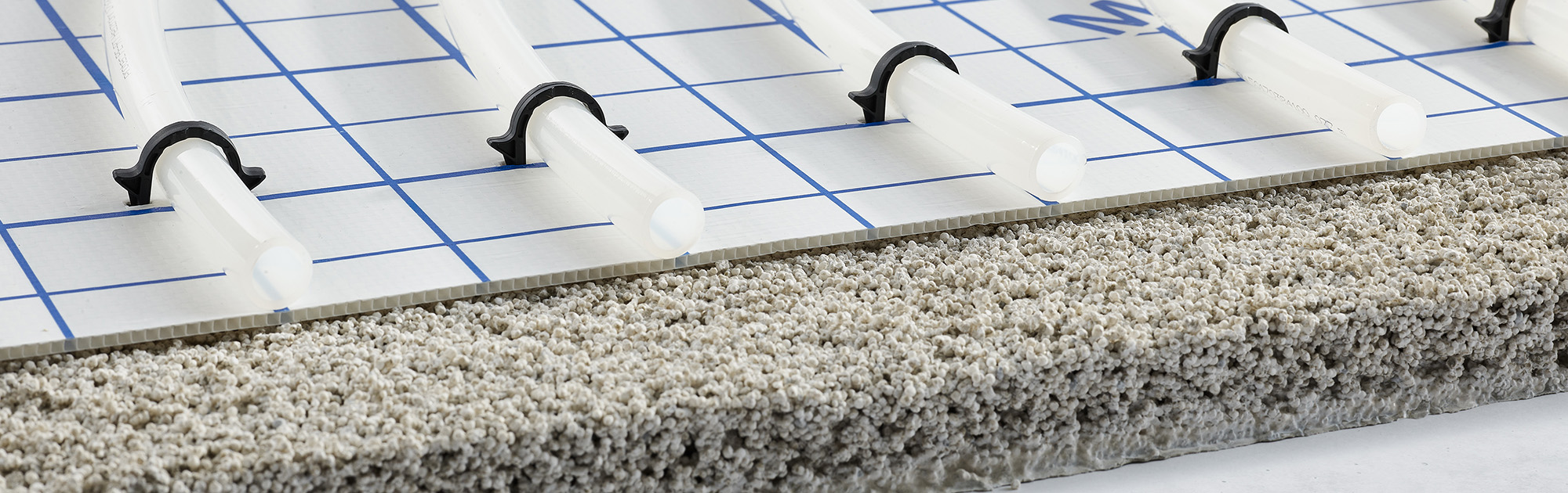Das protec® Clips-Panel dient als reines Rohrträgerelement. Die Widerhaken der protec® Rohrclips-Mini spreizen sich nach dem Durchstechen unterhalb des Panels und sorgen somit für einen optimalen Rückhalt der Heizrohre auf der Fläche.